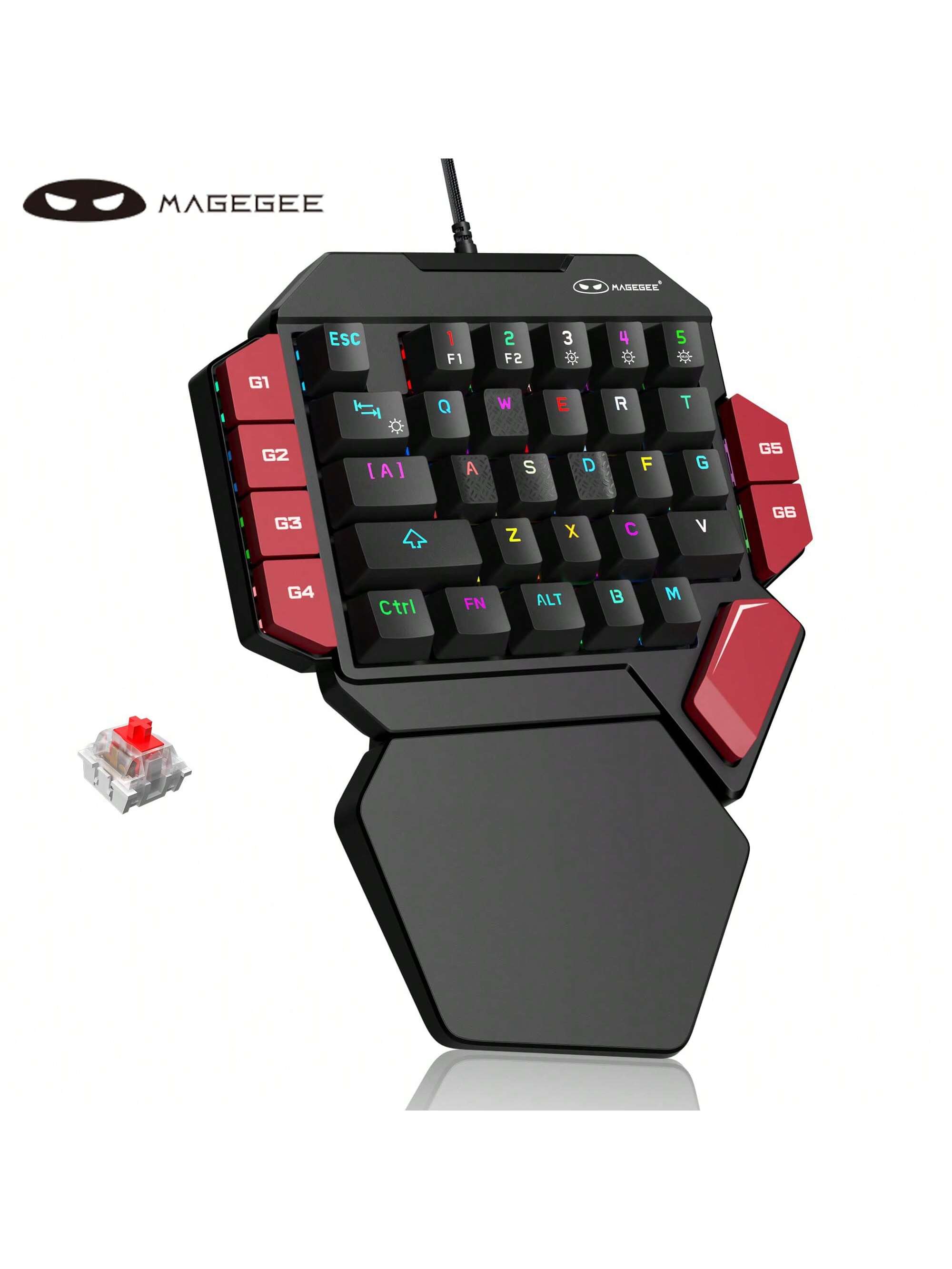 Magegee One Handed Professional Gaming Keyboard, Color Backlit 35 Keys Mini Wired Mechanical Keyboar