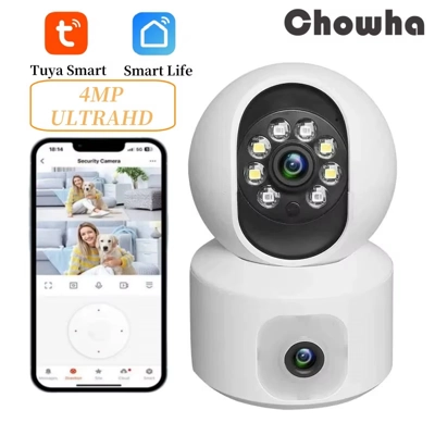 The Tuya 2K Dual Lens WiFi Camera is a cutting-edge security solution designed to provide comprehensive surveillance for your home or office. With its 4MP 2K HD resolution, this camera captures crystal-clear images, ensuring that every detail is visible. The dual lens configuration offers versatility, with one lens providing a fixed wide-angle view and the other a PTZ lens for dynamic monitoring. This allows you to keep an eye on multiple areas simultaneously, reducing blind spots and enhancing your security posture.